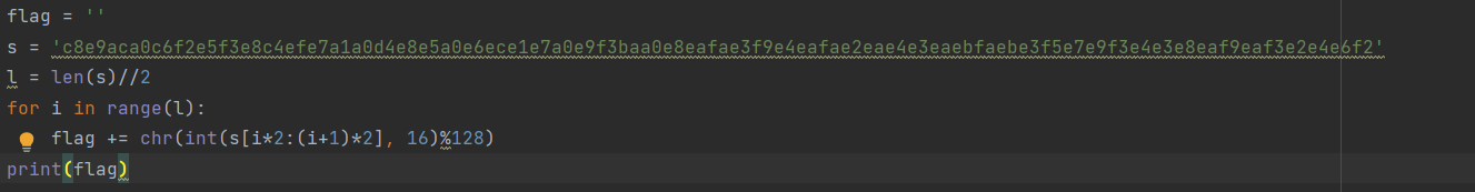 观察密文特征,有0-9,a-f,不难猜测与十六进制有关。我们又知道两位十六进制可以显示一个字节(),所以可以通过脚本显示ASCII码
